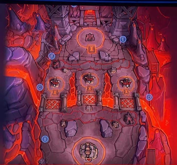 Whereas Golemagg has ‘incineration runes’ surrounding his towers. The implication seems to be they’ll deal aoe damage, making them harder to take.