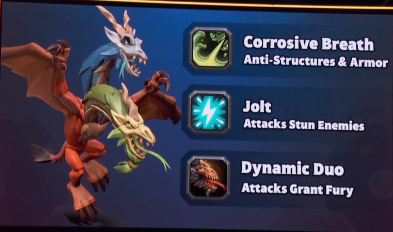 First, we’re getting the Chimera in Season 2, a two-headed flying mini for the beast family. It has two attacks (one for each head) - a corrosive poison blast and a chain lightning attack, with the following talents: